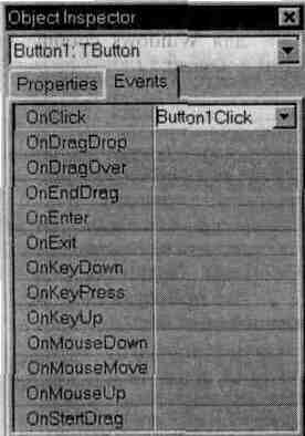 щелкните мышью в графе значений события OnClick объекта Buttoni в окне
