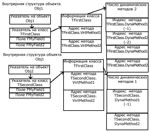 на TObject и TMyObject (то есть на их внутренние структуры). Посредством этой