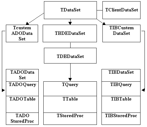 наборов данных в приложениях баз данных Delphi, лежит класс TDataSet. Хотя он