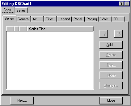 Компонент TDBLookupListBox Компонент представляет собой список значений поля синхронного просмотра для поля, заданного свойством DataField, из набора данных Datasource. Его основное назначение — автоматически устанавливать соответствие между полями двух наборов данных по одинаковому значению заданного поля исходной таблицы и ключевого поля таблицы синхронного просмотра. В списке синхронного просмотра отображаются возможные значения для редактирования поля основной таблицы. По своим функциональным возможностям компонент совпадает с компонентом TDBListBox. Компонент TDBLookupComboBox Компонент представляет собой комбинированный список значений поля синхронного просмотра для поля, заданного свойством DataFieid, из набора данных Datasource. Его основное назначение — автоматически устанавливать соответствие между полями двух наборов данных по одинаковому значению заданного поля исходной таблицы и ключевого поля таблицы синхронного просмотра. В списке синхронного просмотра отображаются возможные значения для редактирования поля основной таблицы. По своим функциональным возможностям компонент совпадает с компонентом TDBComboBox. Графическое представление данных Для представления данных из некоторого набора данных в виде графиков различных видов предназначен компонент TDBChart (см. табл. 18.7). В нем можно одновременно показывать графики для нескольких полей данных. Графики строятся на основе всех имеющихся в наборе данных значений полей. Функционально компонент ничем не отличается от компонента TChart. Настройка параметров компонента осуществляется специальным редактором, который можно открыть двойным щелчком на перенесенном на форму компоненте. Здесь мы не будем подробно останавливаться на богатейших изобразительных возможностях этого компонента, рассмотрим только процесс подключения к нему набора данных и построение графиков. Основой любого графика в компоненте TDBChart является так называемая серия, свойства которой представлены классом TChartSeries. Для того чтобы построить график значений некоторого поля набора данных, необходимо выполнить следующие действия, большинство из которых выполняется в специализированном редакторе компонента.