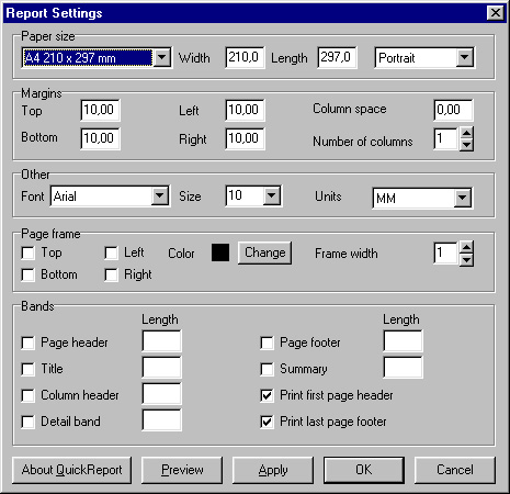 Все они создаются экземплярами компонента TQRBands и образуют стандартный отчет.