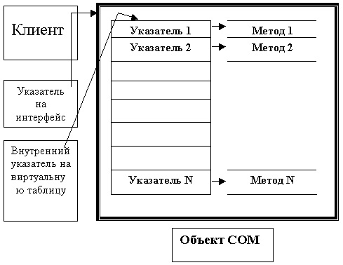 Рассмотрим локальный сервер. Получаемый клиентом указатель интерфейса в этом случае ссылается на специальный proxy-объект СОМ (назовем его заместителем), который функционирует внутри клиентского процесса. Заместитель предоставляет клиенту те же интерфейсы, что и вызываемый объект СОМ на локальном сервере. Получив вызов от клиента, заместитель упаковывает его параметры, и при помощи служб операционной системы передает вызов в процесс сервера. В локальном сервере вызов передается еще одному специализированному объекту — заглушке (stub), который распаковывает вызов и передает его требуемому объекту СОМ. Результат вызова возвращается клиенту в обратном порядке. Рассмотрим удаленный сервер. Он функционирует так же, как и локальный сервер. Однако передача вызовов между двумя компьютерами осуществляется средствами DCOM — с помощью механизма вызова удаленных процедур (Remote Procedure Call, RPC). Для обеспечения работы локальных и удаленных серверов используется механизм маршалинга и демаршалинга. Маршалинг реализует единый в рамках СОМ формат упаковки параметров запроса, демаршалинг отвечает за распаковку. В описанных выше реализациях серверов за выполнение этих операций отвечают заместитель и заглушка. Эти типы объектов создаются совместно с основным объектом СОМ. Для этого применяется IDL. Библиотека СОМ Для обеспечения выполнения базовых функций и интерфейсов в операционной системе существует специальная библиотека СОМ (конкретная реализация может быть различной). Доступ к возможностям библиотеки осуществляется стандартным способом — через вызов функций. Согласно спецификации, имена всех библиотечных функций начинаются с приставки со. При установке поддерживающего СОМ приложения в системный реестр записывается информация обо всех реализуемых им объектах СОМ: