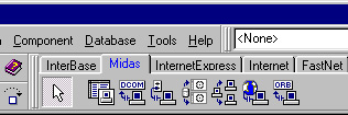 Рис. 29.2. Основные компоненты страницы MIDAS В результате получаем набор компонент связи TDCOMConnection, TSocketConriection, TWebConnection, TCorbaConnection. TDispatchConnection представляет механизм для вхождения на сервер приложений (проверку имени и пароля пользователя), получения интерфейса IAppserver, вызова интерфейса с сервера, управления удаленным соединением (рис. 29.3).