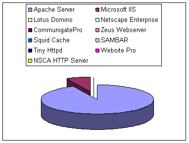 Отмечу, что на деле процент использования веб-серверов не соответствует их оценке. Господствующее положение занимает Apache-сервер. Успех продукта компании Apache трудно оспорить: свыше миллиона веб-узлов успешно на нем работают. Многие Web-мастера и сетевые администраторы настроили серверы Apache под свои нужды благодаря их преимуществу - сравнительно простой архитектуре и наличию большого числа документации в интернете. Тем не менее, если вы не очень ограниченны в средствах и для вас возможность доступа к исходному коду сервера не имеет большого значения, то и другие серверы могут показаться вам столь же хорошими или даже лучшими.