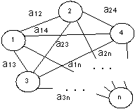 1, 2,…,n – номера компьютеров , а веса дуг - a12, a13, a14,