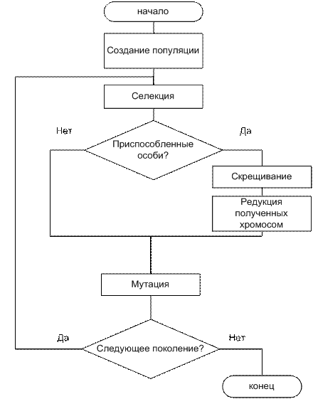 применения каждого оператора (скрещивания, селекции, редукции и мутации).