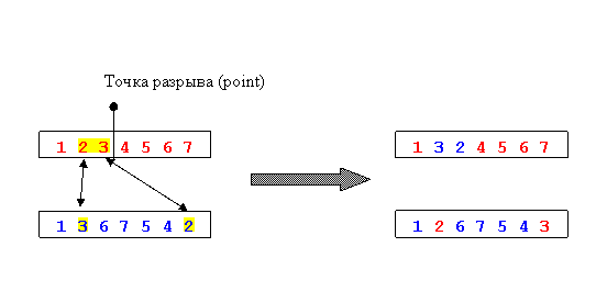 особь). Правилом скрещивания является применение точки раздела хромосомы: