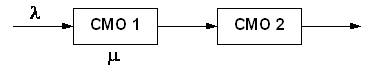 Рассмотрим простейшую последовательную систему с двумя узлами, каждый из которых представляет СМО типа М/ М/1.