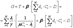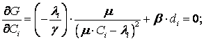 Для минимизации Т - времени пребывания требования в сети составим функцию Лагранжа: